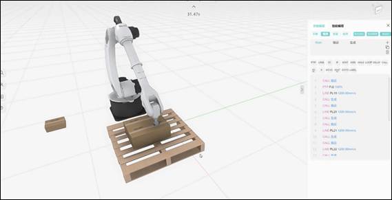 學(xué)生可以將自己寫(xiě)好的機(jī)器人程序復(fù)制或者導(dǎo)入到相對(duì)應(yīng)機(jī)器人的示教編程頁(yè)面,進(jìn)行程序的驗(yàn)證,看機(jī)器人是否按照自己設(shè)想的軌跡進(jìn)行運(yùn)動(dòng)。