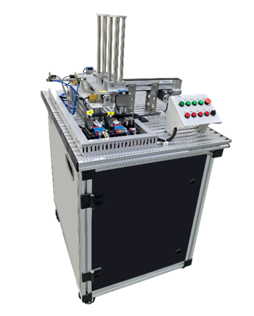物料供給教學(xué)實(shí)訓(xùn)平臺由PLC、移動型材工作臺、控制屏、多通道井式供料機(jī)、帶式傳輸機(jī)構(gòu)、智能接口單元及控制面板、氣路控制裝置等組成。