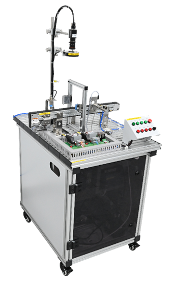 系統(tǒng)可滿足《PLC原理及應(yīng)用》《PLC網(wǎng)絡(luò)技術(shù)》《機(jī)電一體化系統(tǒng)設(shè)計與應(yīng)用》《運(yùn)動控制》《傳感器檢測技術(shù)》《機(jī)械傳動與控制》《氣動技術(shù)》《變頻調(diào)速技術(shù)》《人機(jī)界面技術(shù)》《機(jī)器人控制技術(shù)》《機(jī)械視覺》和《智能控制》等課程的訓(xùn)練教學(xué)要求,能夠反映出典型的實(shí)際工業(yè)生產(chǎn)線現(xiàn)場,能清楚地反映工廠生產(chǎn)線中的供料環(huán)節(jié)、檢測環(huán)節(jié)、加工環(huán)節(jié)、搬運(yùn)環(huán)節(jié)、加熱環(huán)節(jié)、倉儲環(huán)節(jié)等部分,能綜合采用多種工廠典型應(yīng)用的電氣設(shè)備和機(jī)械結(jié)構(gòu)。
