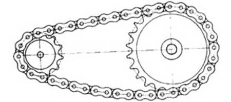 鏈傳動(dòng)是由裝在平行軸上的主、從動(dòng)鏈輪和繞在鏈輪上的環(huán)行鏈條所組成,以鏈作中間撓性件,靠鏈與鏈輪輪齒的嚙合來傳遞動(dòng)力。