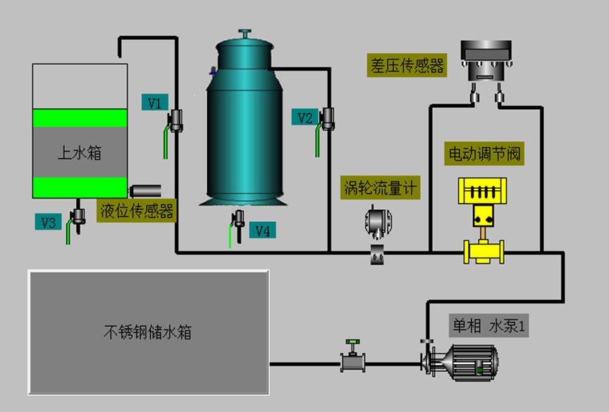 設(shè)備由液位水箱、加熱鍋爐、各類檢測(cè)裝置、執(zhí)行器、水路動(dòng)力系統(tǒng)組成。