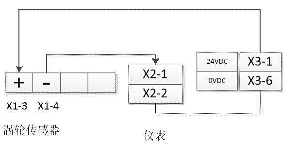 1.    圖2-2渦輪流量計兩線制接法: