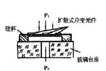 丈量敏感元件為周邊固支的硅杯,在此杯單晶硅膜片的上下兩側(cè)出現(xiàn)壓差時膜片內(nèi)部孕育發(fā)生應(yīng)力。在壓力P1、P2 作用下電橋出現(xiàn)不均衡,輸出一個正比于壓力變革的電壓信號。