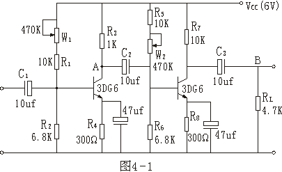 1、按圖4-1連線,BG1、BG2選3DG6,校對電路無誤后接通電源。