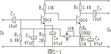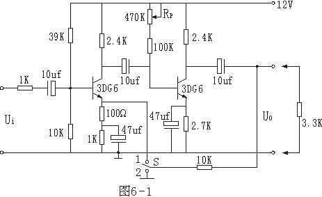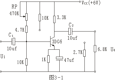 1、按圖3-1連線,穩(wěn)壓電源輸出電壓為6V,正弦波頻率1千赫,電壓10毫伏,集電極電阻3.3KΩ,負載電阻6.8KΩ。