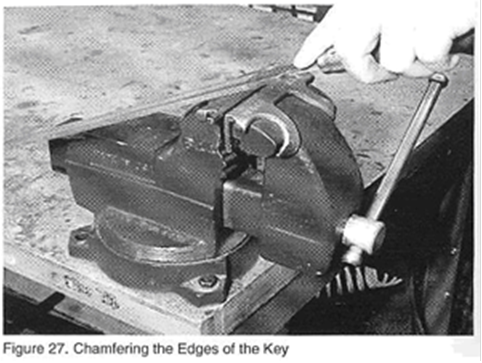 C.  使用平銼在鍵坯一端的兩邊倒角,如圖27所示(若另一端也需要倒角,則需要將