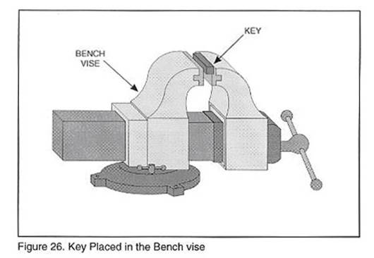 A.  將鍵放置在小臺(tái)鉗上,如圖25所示