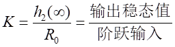 2. 根據(jù)實(shí)驗(yàn)原理中所述的方法,求出被測(cè)二階環(huán)節(jié)的對(duì)象的放大系數(shù)K、時(shí)間常數(shù)T和滯后時(shí)間τ。
