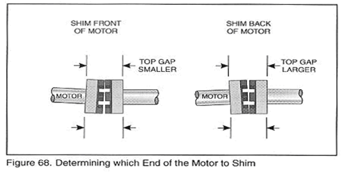 墊片應(yīng)放置在電機(jī)的前支撐墊塊下,反之放在后支撐墊塊下。如圖68所示。