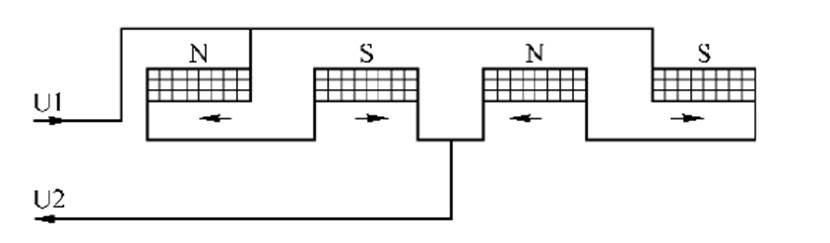 繞組可以是線繞的、也可以是銅圈。沿順時針方向旋轉(zhuǎn)時,則給相應的主繞組U1通電,繞組U2斷電;沿逆時針方向旋轉(zhuǎn)時,則讓主繞組U2通電,繞組U1斷電。