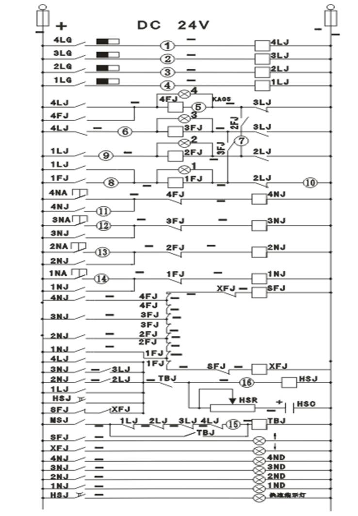 假如司機(jī)在轎內(nèi)按下按鈕3ND,則3NJ得電并自鎖,經(jīng)定向選層后駛向第3層,到達(dá)第3層的換速點后,MSJ閉合、TBJ得電自鎖,HSJ換速繼電器得電,實現(xiàn)換速。