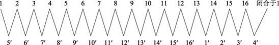 1.相關(guān)知識(shí) 1)繞組的概述 (1)繞組元件 (2)繞組的有效邊與端線 (3)實(shí)槽和虛槽 實(shí)槽是指電樞鐵芯上實(shí)際存在的槽。在實(shí)際的電機(jī)結(jié)構(gòu)中,電樞繞組元件數(shù)往往多于實(shí)槽數(shù),常常在一個(gè)鐵芯槽內(nèi)放置幾組繞組元件,通常把一個(gè)元件的上層邊與另一個(gè)元件的下層邊之間構(gòu)成的一個(gè)虛擬凹槽稱為一個(gè)虛槽,如圖1-17所示。如果一個(gè)實(shí)槽內(nèi)有u個(gè)虛槽,那么,電樞鐵芯的總的虛槽數(shù)Z0和實(shí)槽數(shù)Z的關(guān)系為: Z0 = uZ ![]() (a)u = 1 (b)u = 2 (c)u = 3 圖1-17 實(shí)槽中的虛槽 (4)元件數(shù)與虛槽數(shù)、換向片數(shù)的關(guān)系 (5)極距 (6)繞組的節(jié)距 (7)繞組的形式 2)單疊繞組 (1)單疊繞組的展開(kāi)圖 以虛槽數(shù)Z0、換向片數(shù)K、元件數(shù)S都為16,磁極對(duì)數(shù)p2,組成右行單疊繞組的某直流電機(jī)為例,說(shuō)明單疊繞組展開(kāi)圖的作圖方法和步驟。 ① 計(jì)算繞組極距。 ② 計(jì)算繞組節(jié)距。 采用整距繞組,因?yàn)槭菃委B右行,故: ③ 列繞組元件連接順序表。 單疊繞組在接線時(shí),先將繞組元件、槽及換向片按順序編號(hào),見(jiàn)表1-1。 表1-1 單疊繞組元件串順序表