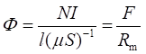 ——磁路的磁阻,,單位為每亨(1/H)。