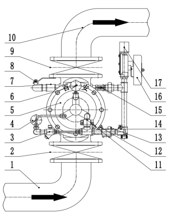 關(guān)閉消防電磁閥(13)及手動(dòng)緊急控制球閥(14),打開復(fù)位球閥(3)雨淋閥很快就復(fù)位。然后將各閥門置于伺服工作狀態(tài)位置。