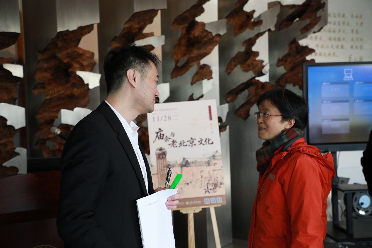 在交流互動環(huán)節(jié),聽眾就清代滿蒙懷柔政策與北京廟會形成之間的內(nèi)在聯(lián)系、北京當?shù)厮聫R的文化屬性等話題進行提問,張臨希一一進行回應。
