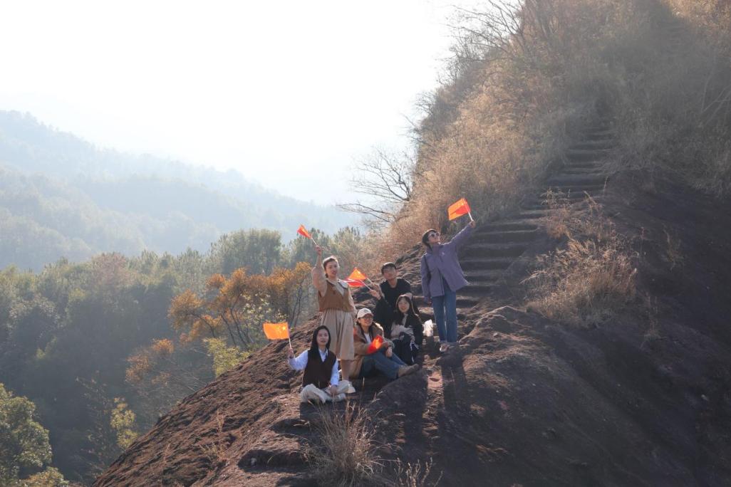 團員青年在調(diào)研中于青嶂山巔唱支山歌給黨聽