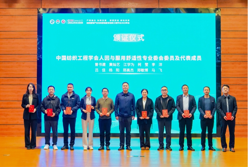 【中國紡織工程學會人因與服用舒適性專業(yè)委員會及代表成員頒證儀式】
