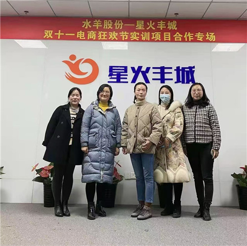 李妮(中)帶領(lǐng)教師團(tuán)隊(duì)在學(xué)生企業(yè)實(shí)訓(xùn)項(xiàng)目現(xiàn)場