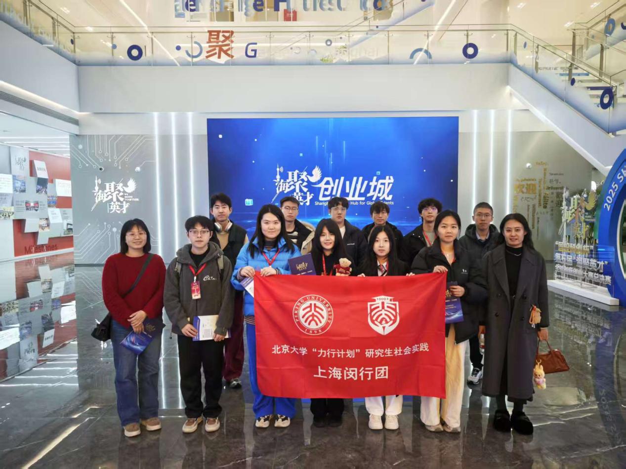 1月19日至25日,在閔行區(qū)委組織部的支持下,2026年北京大學“力行計劃”研究生寒假社會實踐上海閔行團圍繞“提升‘大零號灣’科創(chuàng)策源能力:以‘海聚英才’創(chuàng)業(yè)城賦能青年人才創(chuàng)新創(chuàng)業(yè)的研究”的主題,開展為期一周的實地調(diào)研。團隊共有12人,分別來自軟件與微電子學院、藝術(shù)學院、人口研究所、國家發(fā)展研究院、中國語言文學系、國際關(guān)系學院、對外漢語教育學院、地球與空間科學學院。
