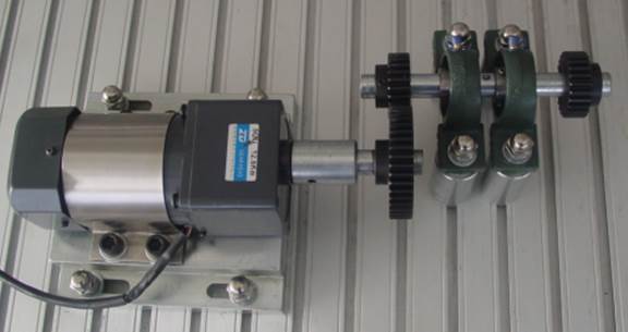 電機(jī)一臺、電機(jī)座、標(biāo)準(zhǔn)直齒圓柱齒輪一對、軸承座、立柱、傳動軸(φ20活塞桿)、T型螺釘、M12螺母、百分表一個、游標(biāo)卡尺一把、直尺一把(20cm)、米尺一把、轉(zhuǎn)速傳感器、各種安裝工具等。