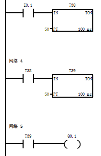 4 = Q0.0 延時時間到,輸出