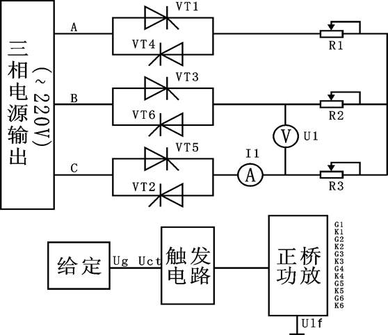 (1) 三相交流調(diào)壓觸發(fā)電路的調(diào)試。