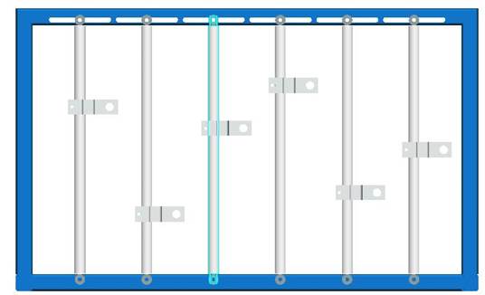 實驗臺機架如圖2所示:機架中有5根鉛垂的活塞桿,它們可沿X軸左右移動,固定靠六角頭螺釘和蝶型螺母固定。需移動時請先將蝶型螺母松開,雙手推動活塞桿.并盡可能使它保持垂直狀態(tài);钊麠U上的滑塊可沿Z軸上下移動,用內六角螺釘將滑塊緊定在活塞桿上。(注意:在移動立柱或滑塊時需用直尺或卷尺量出它們的相對位置再把螺釘擰緊。)