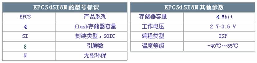 板上使用的配置芯片為Altera公司生產(chǎn)的串行主動配置芯片EPCS4S08。Altera公司的串行配置器件是業(yè)界最低價格的配置器件。性能包括在系統(tǒng)編程(ISP)能力和多次編程能力,這種新型串行配置器件作為Cyclone™FPGA器件在大容量低價格應(yīng)用領(lǐng)域的完美補充,使得FPGA和配置器件相結(jié)合,提供一種盡可能最低價格的完整的可編程片上系統(tǒng)(SOPC)解決方案。EPCS4SI8N器件的型號標(biāo)識與參數(shù)如表2-4所示: