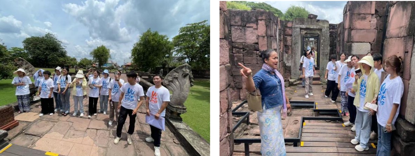 同學(xué)們先后參觀了呵叻府的多處歷史古跡。潘南遷古寺的浮雕展現(xiàn)著泰國古代雕塑藝術(shù)的魅力,坦布拉薩特考古遺址留存著古老文明的印記,還有“高棉藝術(shù)明珠”之稱的披邁歷史公園,以宏大的石砌建筑重現(xiàn)了前吳哥時期的景象。