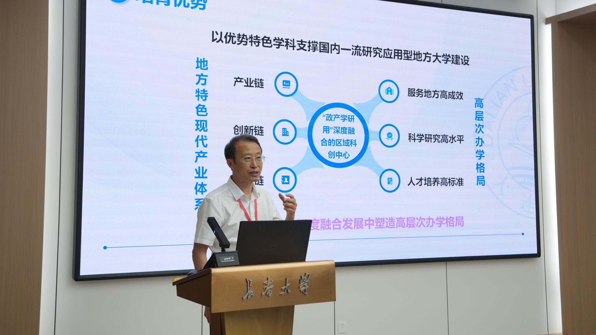 成都大學(xué)黨委副書記、校長朱明作了題為《堅守立德樹人初心,踐行強校興城使命》的報告,為地方高校實現(xiàn)價值引領(lǐng)與服務(wù)地方統(tǒng)一提供了典范。