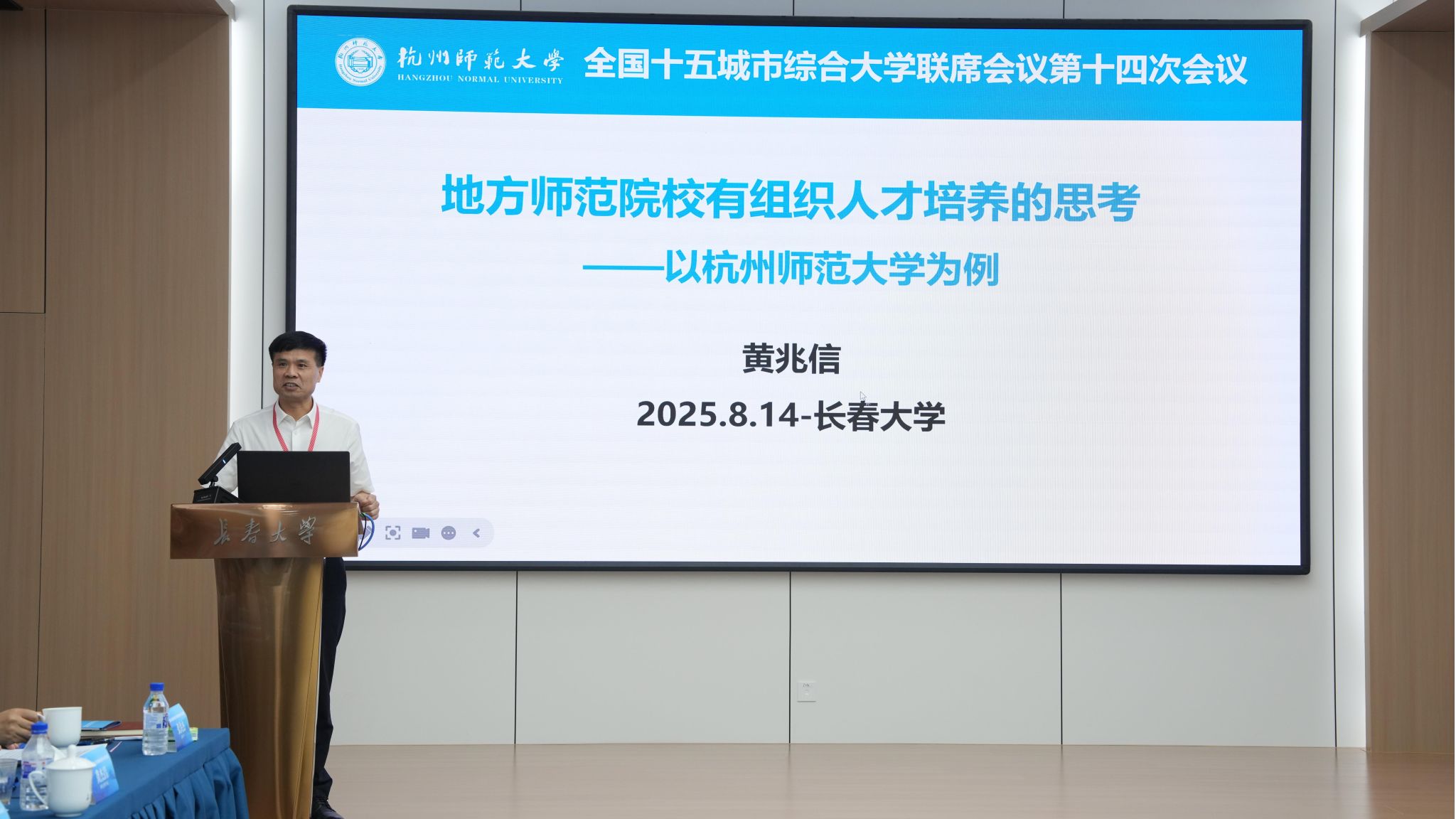 8月14日,全國十五城市綜合大學(xué)聯(lián)席會議第十四次會議在我校召開。吉林省教育廳副廳長劉學(xué)軍,學(xué)校黨委書記所永吉、校長韓業(yè)、黨委副書記王劍飛、副校長張洪杰以及會議成員單位代表出席會議。會議由王劍飛主持。