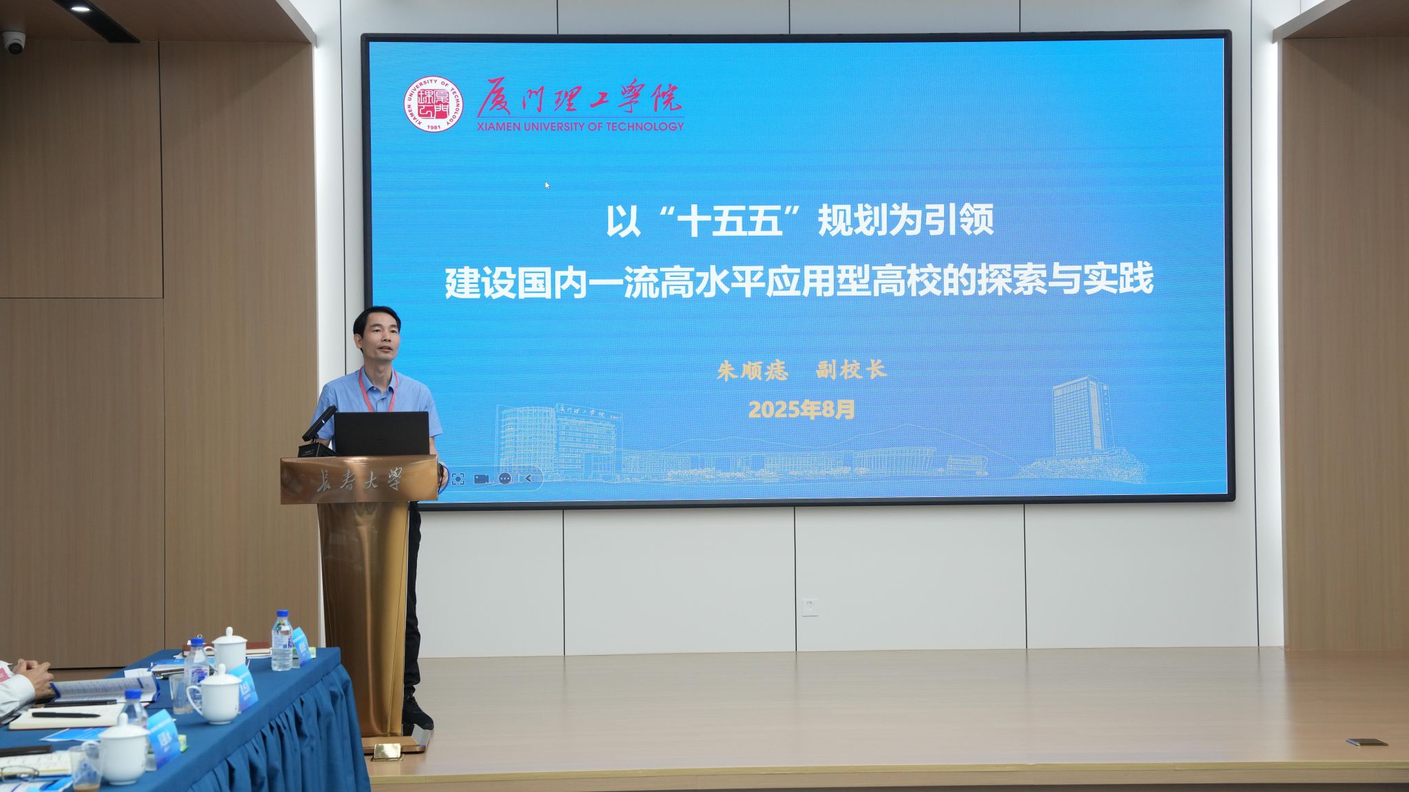 廈門理工學(xué)院副校長朱順痣作了題為《以‘十五五’規(guī)劃為引領(lǐng),建設(shè)國內(nèi)一流高水平應(yīng)用型高校的探索與實踐》的報告。