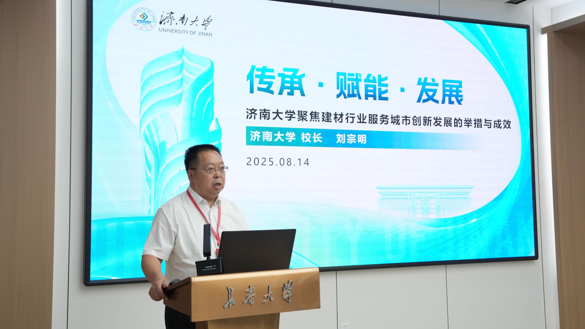 濟南大學(xué)校長劉宗明作了題為《傳承·賦能·發(fā)展——濟南大學(xué)聚焦建材行業(yè)服務(wù)城市創(chuàng)新發(fā)展的舉措與成效》的報告,為高校創(chuàng)新發(fā)展提供了有力示范。