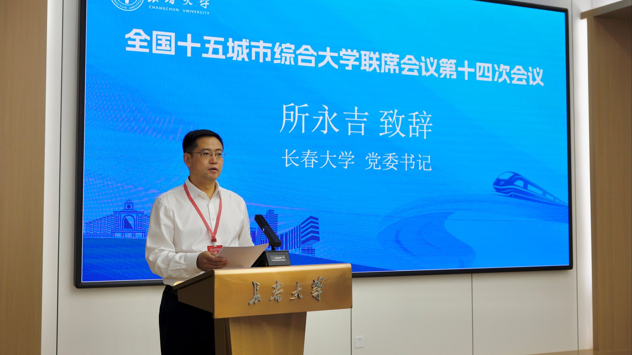 所永吉在致辭中表示,此次會議是貫徹落實習(xí)近平總書記在全國教育大會上重要講話精神、落實教育強國建設(shè)規(guī)劃綱要轉(zhuǎn)化為生動實踐的落實大會。長春大學(xué)作為一所學(xué)科門類齊全、多專業(yè)協(xié)調(diào)發(fā)展、辦學(xué)特色鮮明的省屬綜合性大學(xué),近年來,學(xué)校堅持“面向地方、面向行業(yè)、面向產(chǎn)業(yè)”的學(xué)科專業(yè)建設(shè)定位,致力于讓人才培養(yǎng)和科技創(chuàng)新精準對接地方經(jīng)濟主戰(zhàn)場和國家重大工程;堅持國際化辦學(xué),努力提升學(xué)校整體實力和國際聲譽;堅持特色辦學(xué)之路,著力推動高等特殊教育事業(yè)高質(zhì)量發(fā)展;堅持推進產(chǎn)教融合,積極推動科研成果高效轉(zhuǎn)化,在奮力推動吉林高質(zhì)量發(fā)展明顯進位中展現(xiàn)長大擔(dān)當(dāng)。希望成員單位能夠打破壁壘、深化協(xié)同,攜手同行、集群發(fā)展,扎根地方、精準發(fā)力,以此次會議為新的起點,同心同德,務(wù)實篤行,將發(fā)展共識轉(zhuǎn)化為推動15所城市綜合大學(xué)共進共贏、服務(wù)教育強國建設(shè)的磅礴力量。