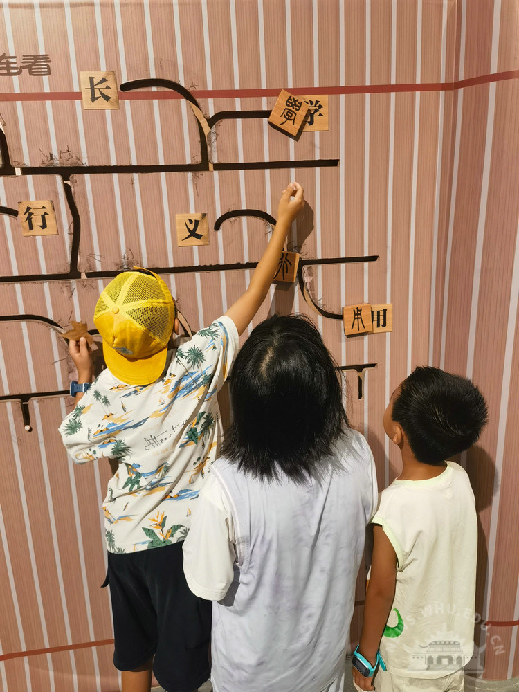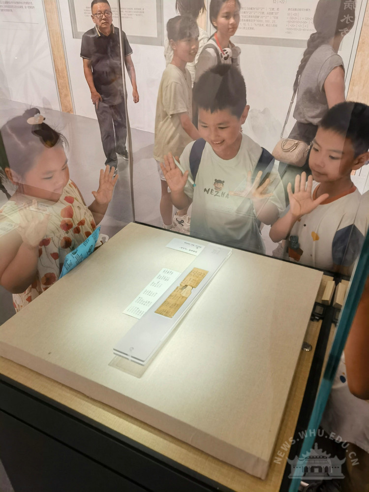 恰逢暑期,展廳成為全國各地中小學(xué)生研學(xué)的生動(dòng)課堂。據(jù)不完全統(tǒng)計(jì),展覽共接待研學(xué)團(tuán)隊(duì)100余支。青少年在大學(xué)生志愿者帶領(lǐng)下,認(rèn)真聆聽簡牘背后的故事,于古今對話中體悟中華傳統(tǒng)文化的深厚底蘊(yùn),使展覽真正成為一堂沉浸式的歷史文化實(shí)踐課。