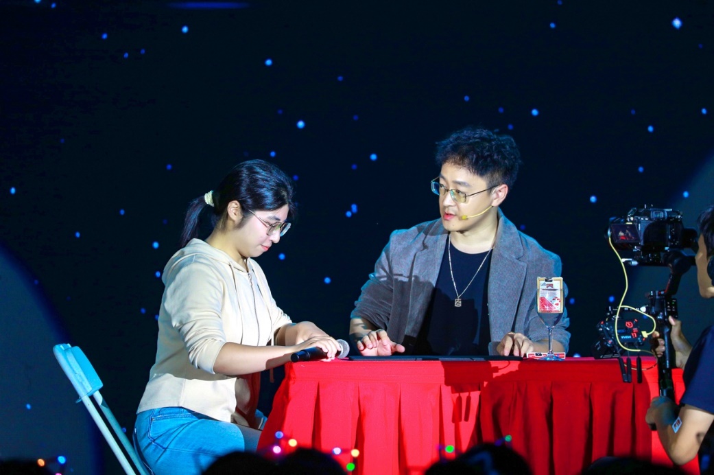 在中秋佳節(jié)即將到來之際,來自各個院系的教師代表帶來了歌曲《望月》,為同學(xué)們送出最真摯的祝福。魔術(shù)《月夜魔法》將遠(yuǎn)方的親友與現(xiàn)場聯(lián)通,帶來團(tuán)聚的溫暖。創(chuàng)意編排《驍》將歌曲與武術(shù)結(jié)合,打造出氣勢磅礴的武俠世界,旋律激蕩之間,凝聚著華夏兒女的昂揚(yáng)斗志與無盡豪情。