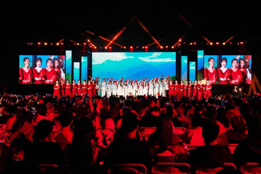 十佳歌手聯(lián)袂獻(xiàn)唱的《我愛你中國》向祖國送出最深情的告白,用歌聲獻(xiàn)禮祖國華誕。大屏幕上一幅幅中國壯麗風(fēng)光、建設(shè)成就和人民幸福生活的影像徐徐展開,與歌聲交織成一曲動人的視聽交響。 “我愛你中國,心愛的母親”唱響時,全場觀眾深受感染,情不自禁地起身揮動手中的國旗,一同加入合唱。霎時間,草坪化為一片涌動的紅色海洋,激昂的歌聲與澎湃的激情交織,將晚會現(xiàn)場化作一堂生動而深刻的愛國主義課堂。