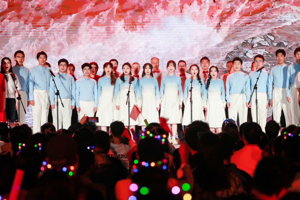 青春歌曲和經(jīng)典曲目的薈萃交融:《青春大概》《夜空中最亮的星》或青澀懵懂,或溫柔堅定,展示了追夢路上永不服輸?shù)尿湴僚c勵志,觀眾們一起揮舞手中的熒光棒、跟隨著歌手哼唱,倍感幸福充實(shí)!督裉臁贰洞和パ贰缎腋?燔嚒返冉(jīng)典歌曲更承載著北大學(xué)子對音樂與美的熱忱追求,為師生帶來一場視聽盛宴。