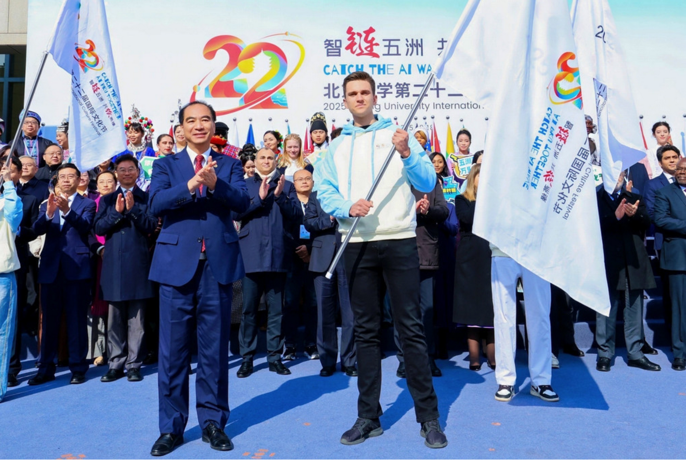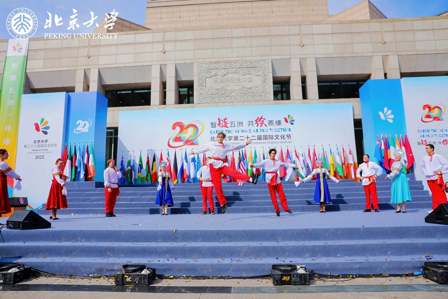 2025年10月18日,北京大學(xué)第二十二屆國際文化節(jié)在百周年紀(jì)念講堂廣場開幕。本屆文化節(jié)以“智鏈五洲,共繪燕緣”為主題,共設(shè)置“聆聽世界聲音”“縱享世界繽紛”“共賞世界靈韻”“感受世界文明”四大板塊、20項(xiàng)活動(dòng),吸引眾多中外嘉賓和師生參與。